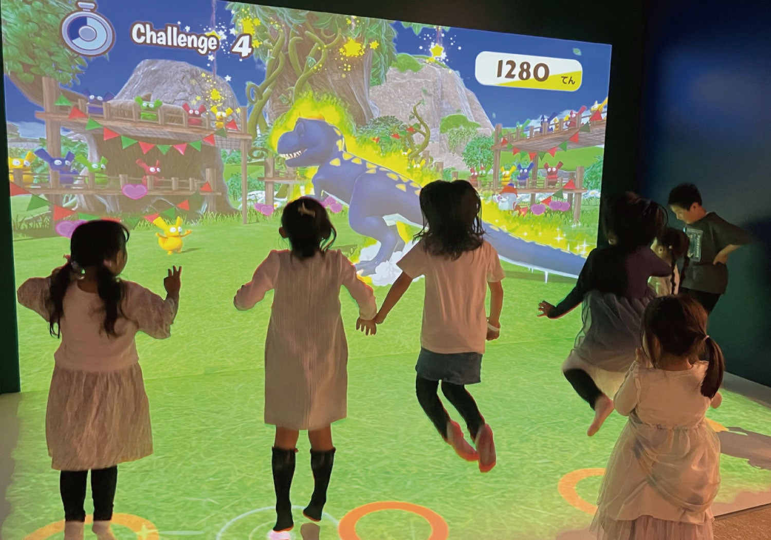 スクリーンに登場するティラノサウルスのシッポを“縄跳び”のようにジャンプでよけて楽しむ、“集団×運動遊び”型の最新アトラクション「DINO JUMPING(ディノ ジャンピング)/ふしぎな大縄跳び」が都内初登場!外で遊べない雨の日や暑い日でも、室内で全身を使って思いっきり楽しめます。