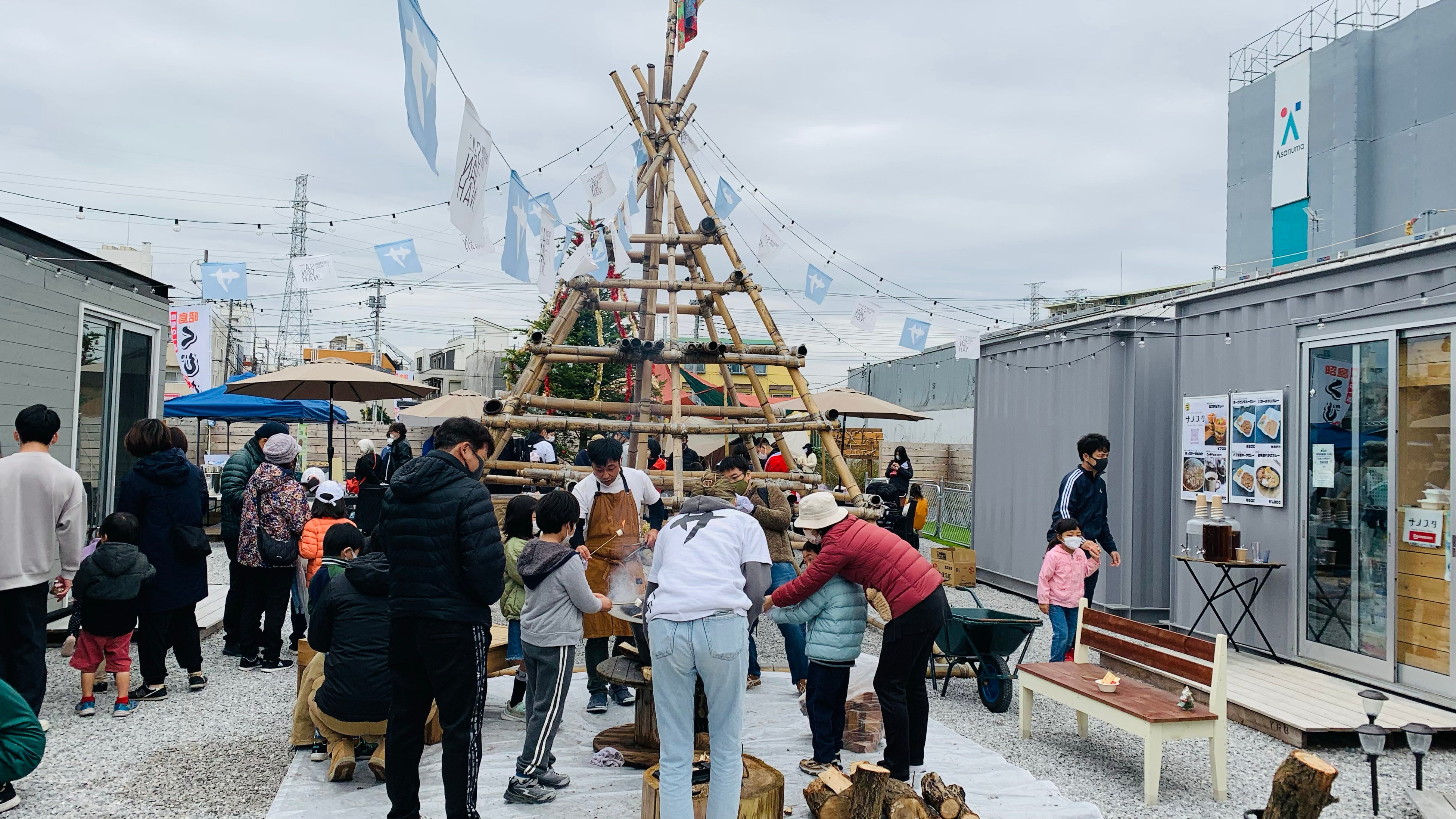 当店では不定期に地域のお店や昭島市との連携イベント、サウナ体験会といったイベントを開催しています。過去には「昭島市産業まつり連携イベント〈クリスマスの自由研究inサバンナアキシマ〉/サバンナアキシマ・クリスマスマルシェ」(2023年12月17日-下の画像-)、「2時間薪サウナ入り放題1,800円」(2024年3月2日)などのイベントを実施。次回は2024年6月23日(日)に「第1回鯨歩市(くじらぶいち)オーガニックアキシマ」を開催します。このイベントではオーガニックや昭島産の食材を使うお店が「SAVANNAH AKISHIMA」に集結します。
