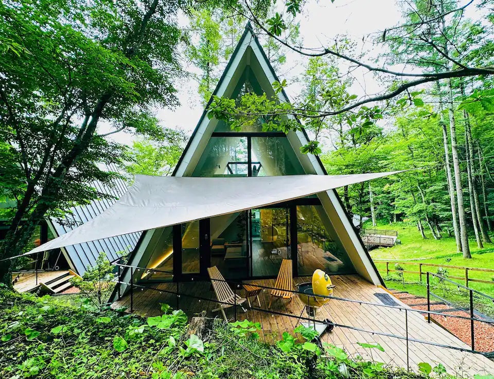 山中湖畔の魅力的な三角屋根の「Aフレームハウス」