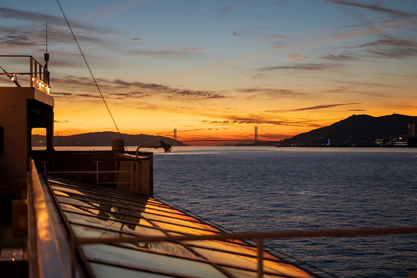 花火を船上から満喫いただくのはもちろん、行きには明石海峡大橋の夕陽、帰りには海の宝石箱のような神戸港の夜景と、特別な景色がたっぷり。