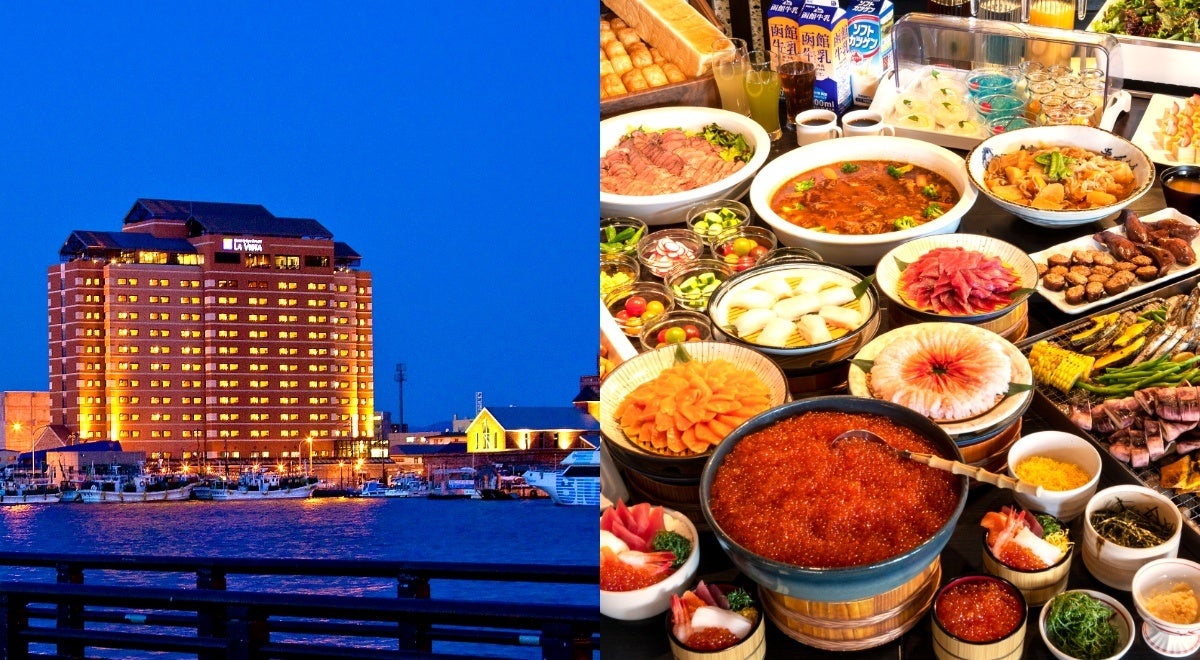 人気の朝食バイキングでは、函館名物のイカやお好みでトッピングする海鮮丼など函館らしいグルメをご用意しています。