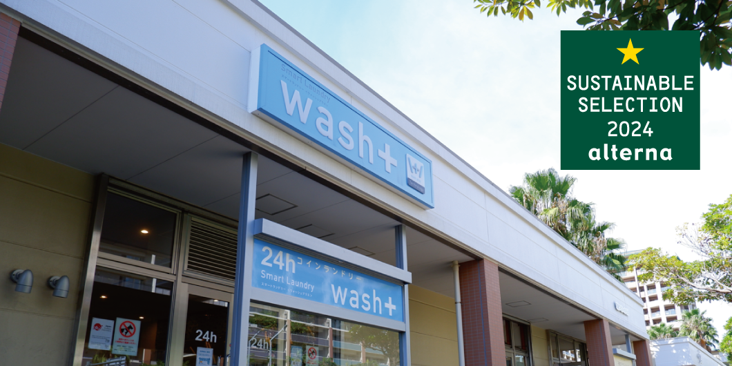 株式会社wash-plusが展開する、「コインランドリーwash+」と宿泊施設向けランドリー「wash+ Comfort」は、洗剤を使わず「wash+ Water」(洗濯専用アルカリイオン電解水)で洗い上げる特許技術を事業化しています。