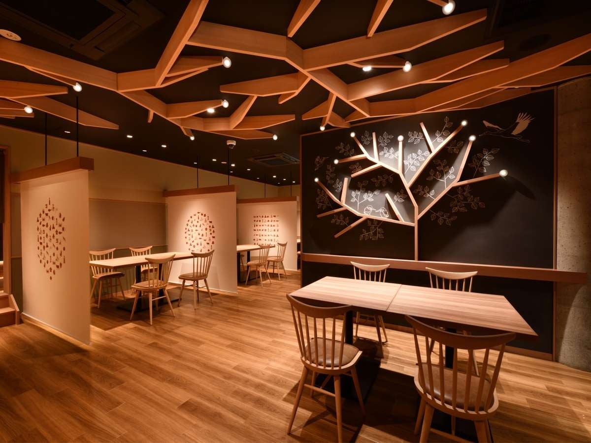 全席テーブル席であり、広い空間に1テーブルごと間隔を空けて配置をしておりますので、安心安全に、ゆったりとお食事をお楽しみいただけます。