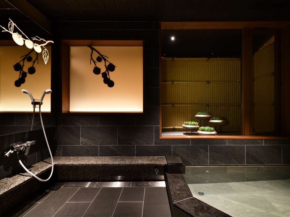 天然香住温泉を源泉とし、モダンな和の空間の中に銀引きで香住の海をイメージしたデザインを取り入れています。同室にあるドライサウナと併せて使って日々の疲れを癒すことができます。