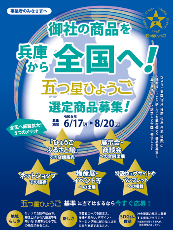 詳細については、「五つ星ひょうご」ホームページをご参照いただくか、下記お問合せ先にご連絡願います。