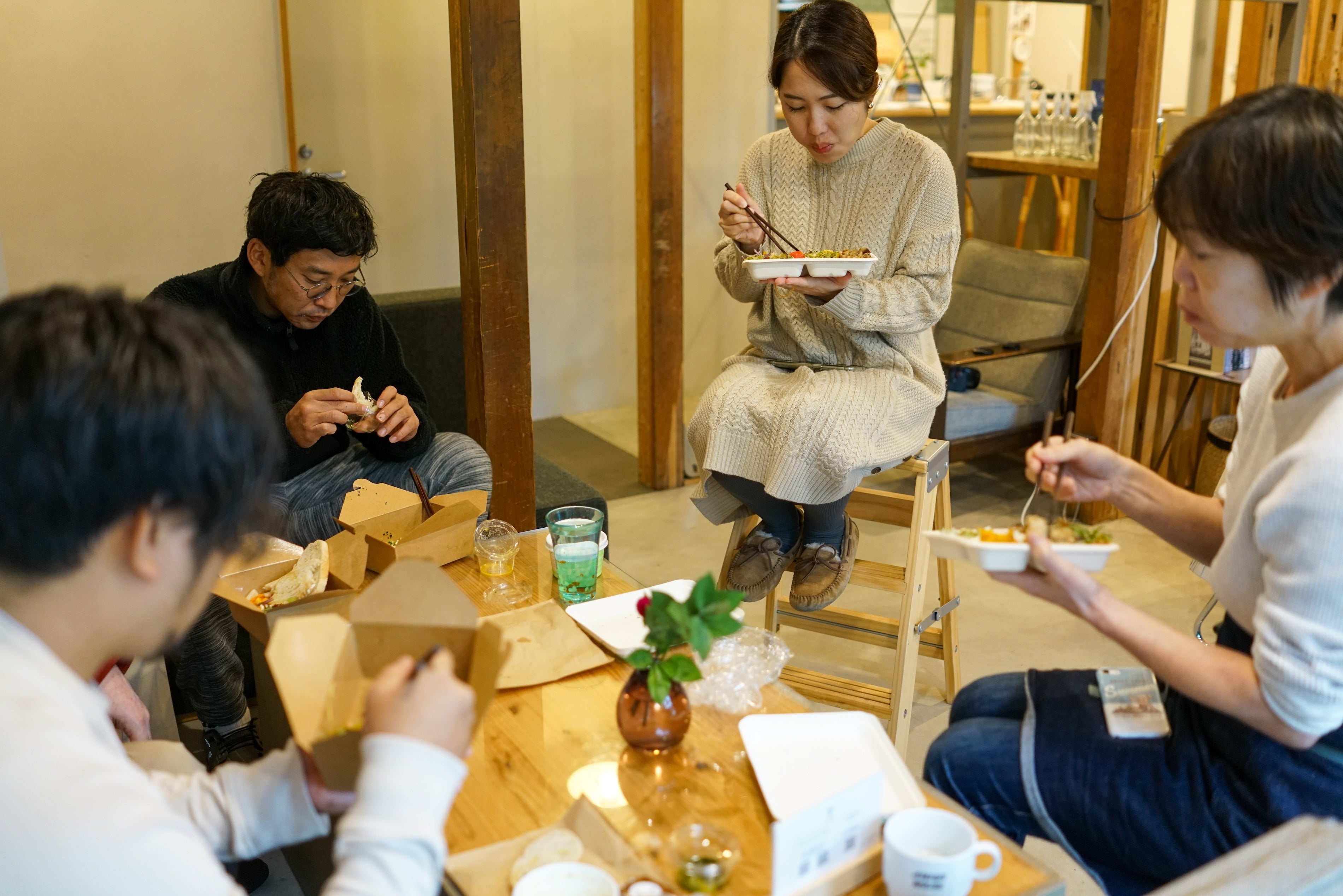 ワークスペースで、それぞれの仕事をしながら、ランチタイムは逗子市内の様々な飲食店のお料理を食べながらの交流タイムを設けます。お一人での参加や会社の部署ごとなど、様々な用途や形態に合わせて、逗子でのワーケーションを楽しんでいただけます。