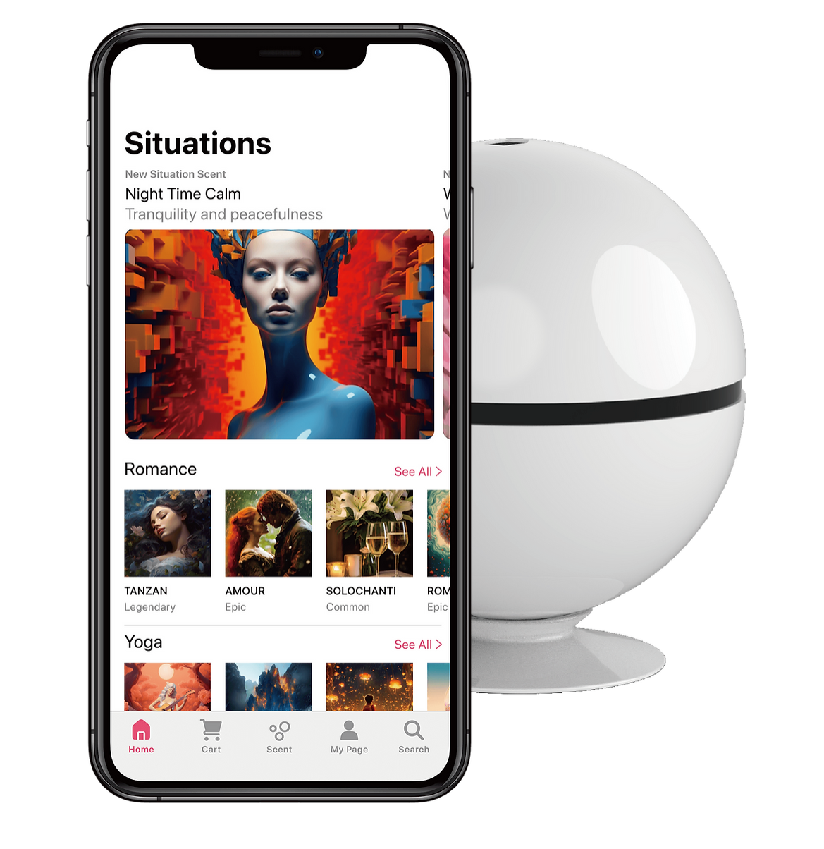 Scent Storeとは、気分に応じて様々なジャンルの音楽をダウンロードして楽しめるように、香りをダウンロードし再生できるサービスです。この革新的なプラットフォームは、ユーザーが香りをデジタルデータとして取得し、専用のディフューザーで再生することが可能です。Scent Storeは、香りの多様性を楽しむ新しい方法を提供し、ユーザーが気分やシチュエーションに応じて香りを自由に切り替えることができるよう設計されています。