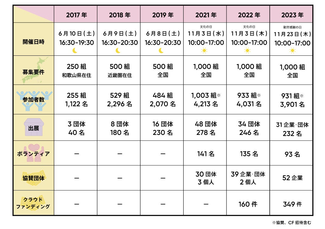 本年度も、イベント趣旨にご賛同いただけた皆様に対する「協賛パートナー」・「Smileサポーター(運営ボランティア)」・「クラウドファンディング」の募集を予定しております。詳細につきましては、準備が整い次第発信させていただきます。何とぞご支援とご協力を賜りますようお願い申し上げます。