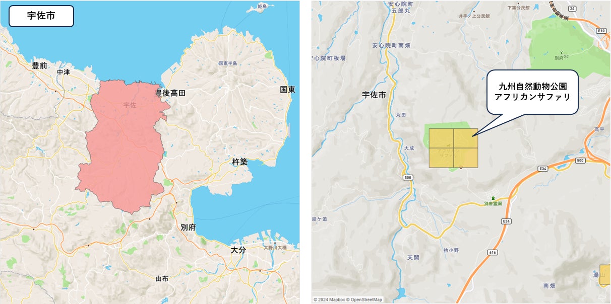 宇佐市での滞在エリアを確認すると、九州自然動物公園・アフリカンサファリでの滞在が多いことがわかりました。