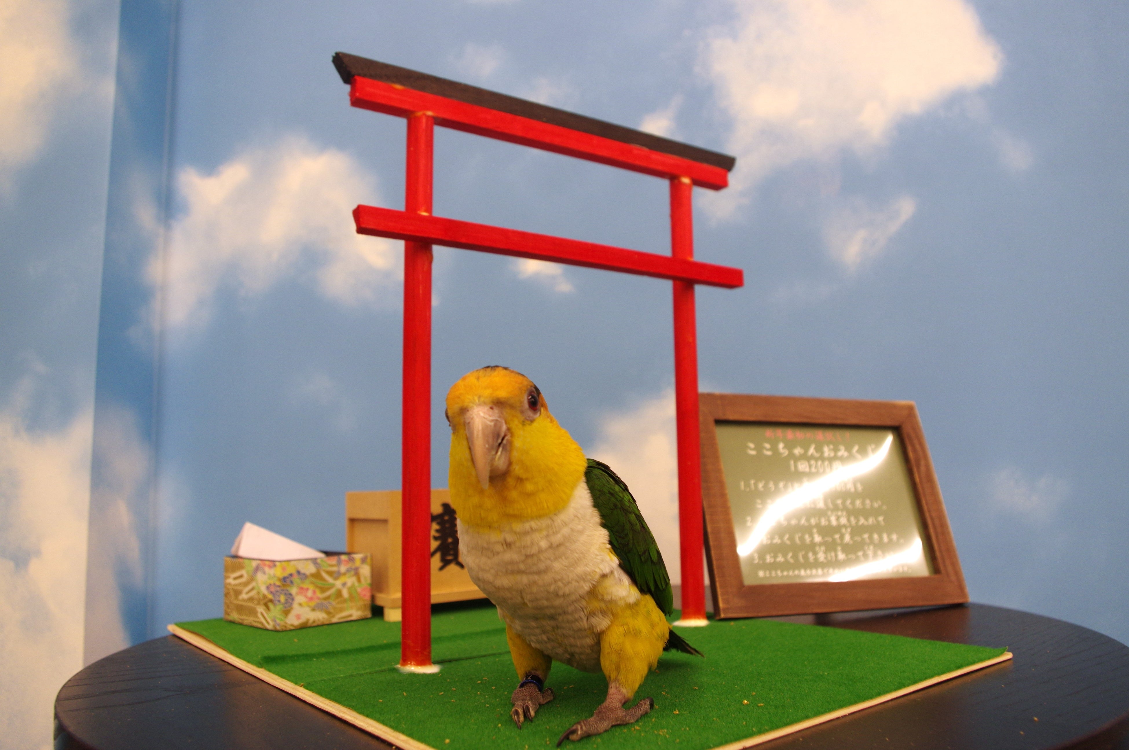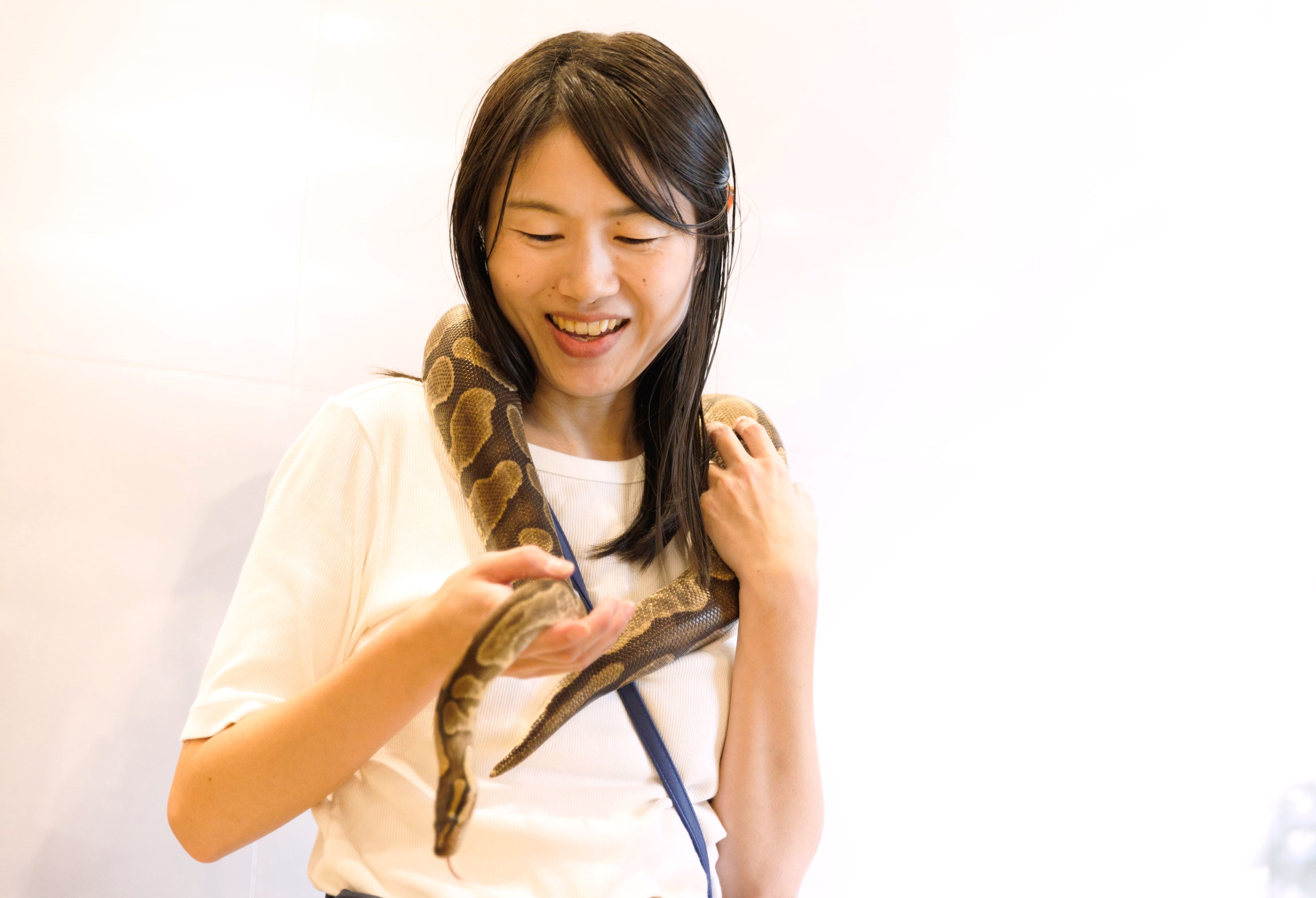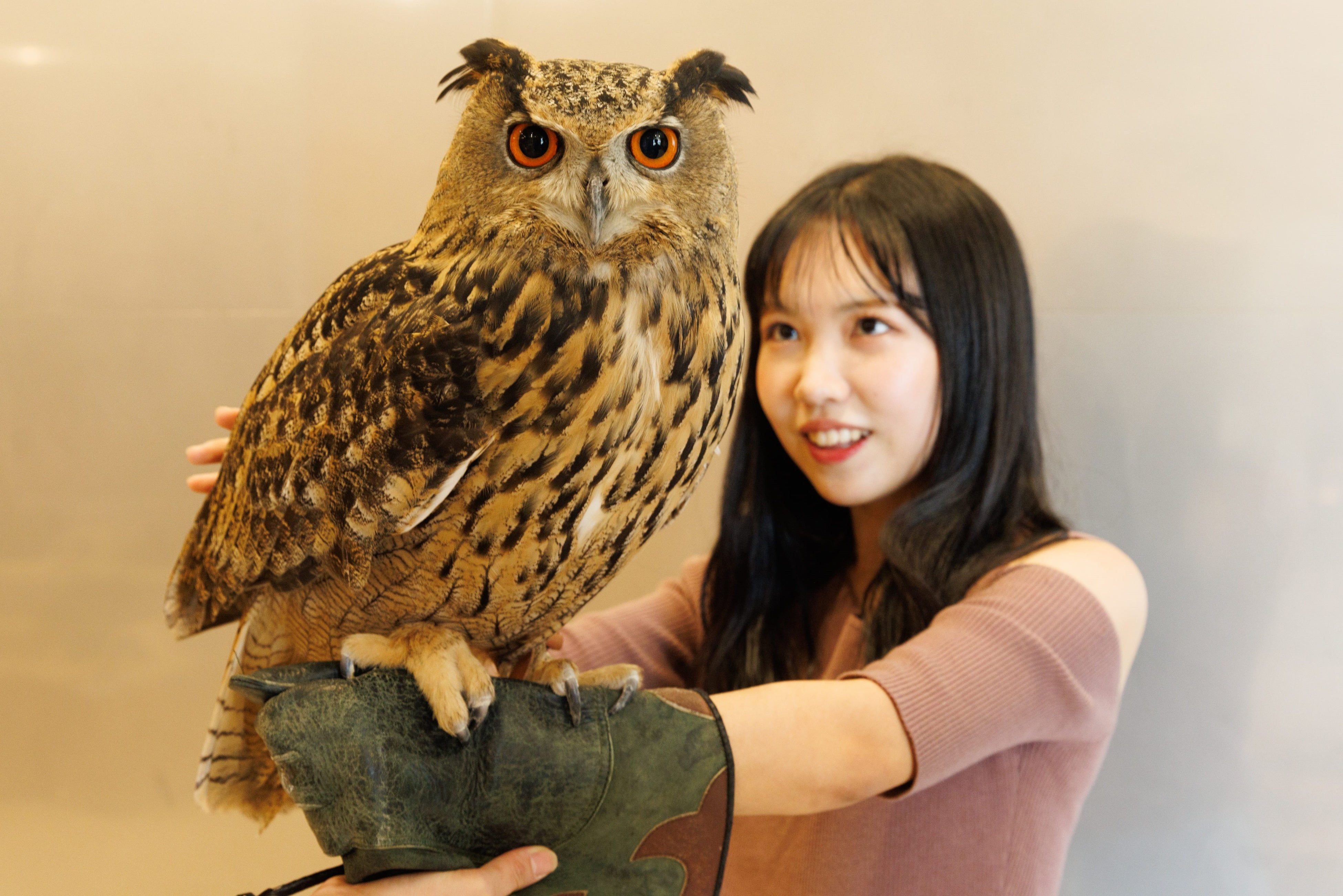 体験イベント  :ヘビの首巻き体験、フクロウの手乗せ体験、インコのおみくじなど