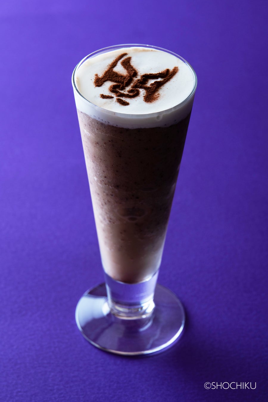 コーヒーリキュールにベイリーズやキャラメルシロップで甘さを加え、ココアパウダーで隈取をあしらいました。デザートカクテルにもおすすめです。