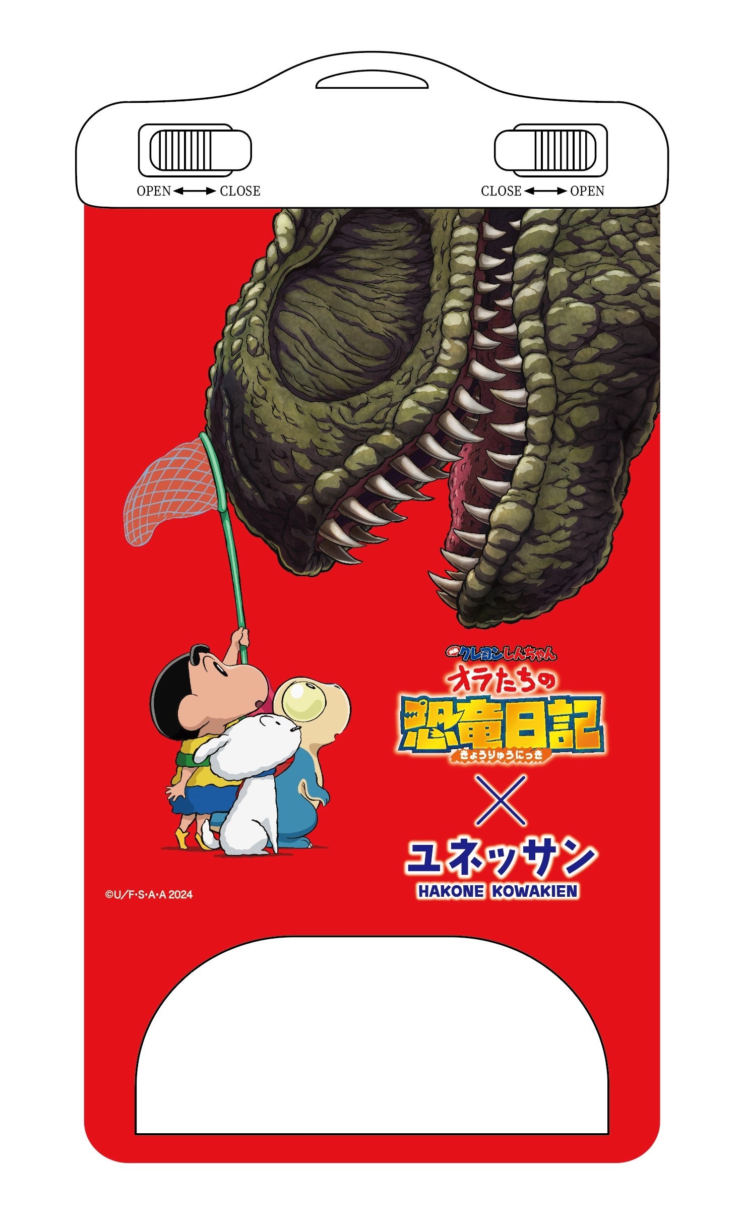 本イベントでは期間中、館内各所に映画の世界観を感じられる装飾を施すなど、「恐竜」をテーマに、史上最大のアンビリーバボーな体験を皆さまにご提供いたします。コラボ風呂として、可愛らしい恐竜姿のカスカベ防衛隊が描かれた「オラたちの恐竜フィーバー風呂」、まるで恐竜時代にタイムスリップしたようなスリル満点のサウンドを楽しめる「ダイナソー・ケーブ」、そしてしんちゃんのぶりぶり熱波が楽しめるサウナイベント「嵐を呼ぶ ケツ!アツ!ロウリュ」の3つをお楽しみいただけます。また、しんちゃんによる館内放送の実施の他、ショップ&水着レンタル「ukiuki」ではオリジナルデザインの防滴スマホケースを販売いたします。さらにプールサイドでは、しんちゃんと一緒に恐竜について学べる恐竜クイズ(特別監修:福井恐竜博物館)と、恐竜姿のしんちゃんによるグリーティングを実施いたします。加えて、隣接するオフィシャルホテル「箱根ホテル小涌園」にも、毎日しんちゃんが登場して皆さまをお出迎えいたします。