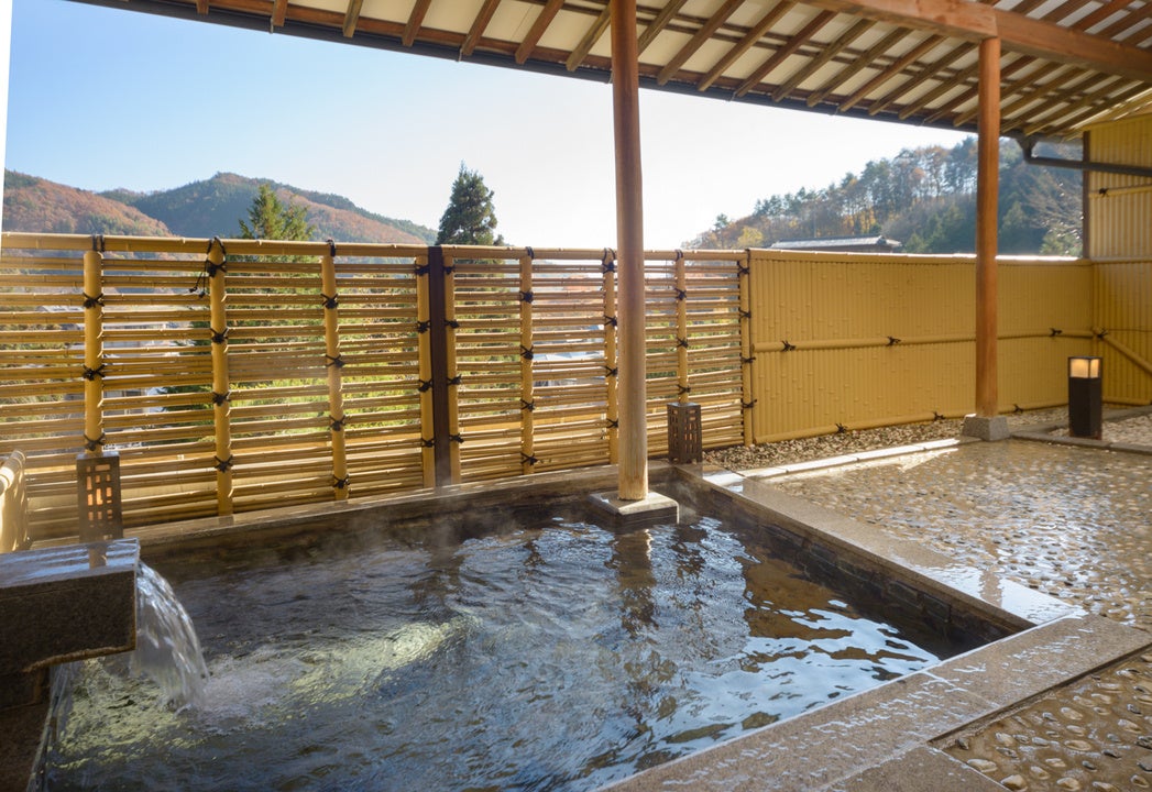 昼神温泉はPh9.7強アルカリ性のトロトロ・ヌルヌルとした泉質で、皮膚の汚れや古い角質・皮脂を取り除き肌の新陳代謝を促進する等の効果が期待でき、日本屈指の「美人に湯」として有名です。大人8人でも余裕で入れる大きさの貸切風呂は、この昼神温泉郷でもとても珍しく、お客様に大変ご好評いただいております。