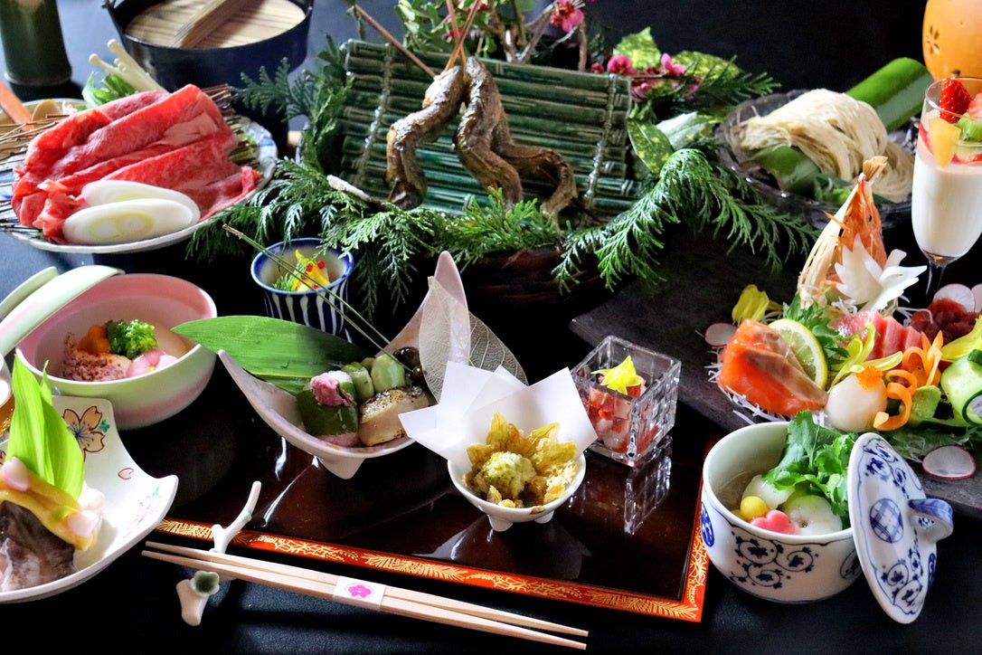 とろける味わいがたまらない「信州牛」のすき焼きや、先代から続くこだわりの伝統食「天魚焼」など、土地・季節の食材を取り入れた「はなや旬彩懐石」をお召し上がりください。