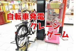 ↑自らが自転車で発電し景品をゲットする「自転車発電キャッチャー」。