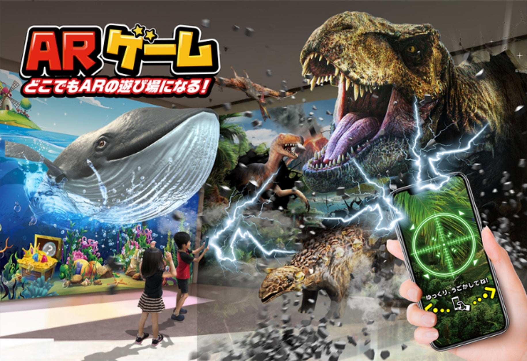 海の絵から出現した⿂を釣り上げる『AR釣りゲーム』、ジャングルの絵から出現した恐竜とバトルする『AR恐竜ゲーム』をご用意しております。