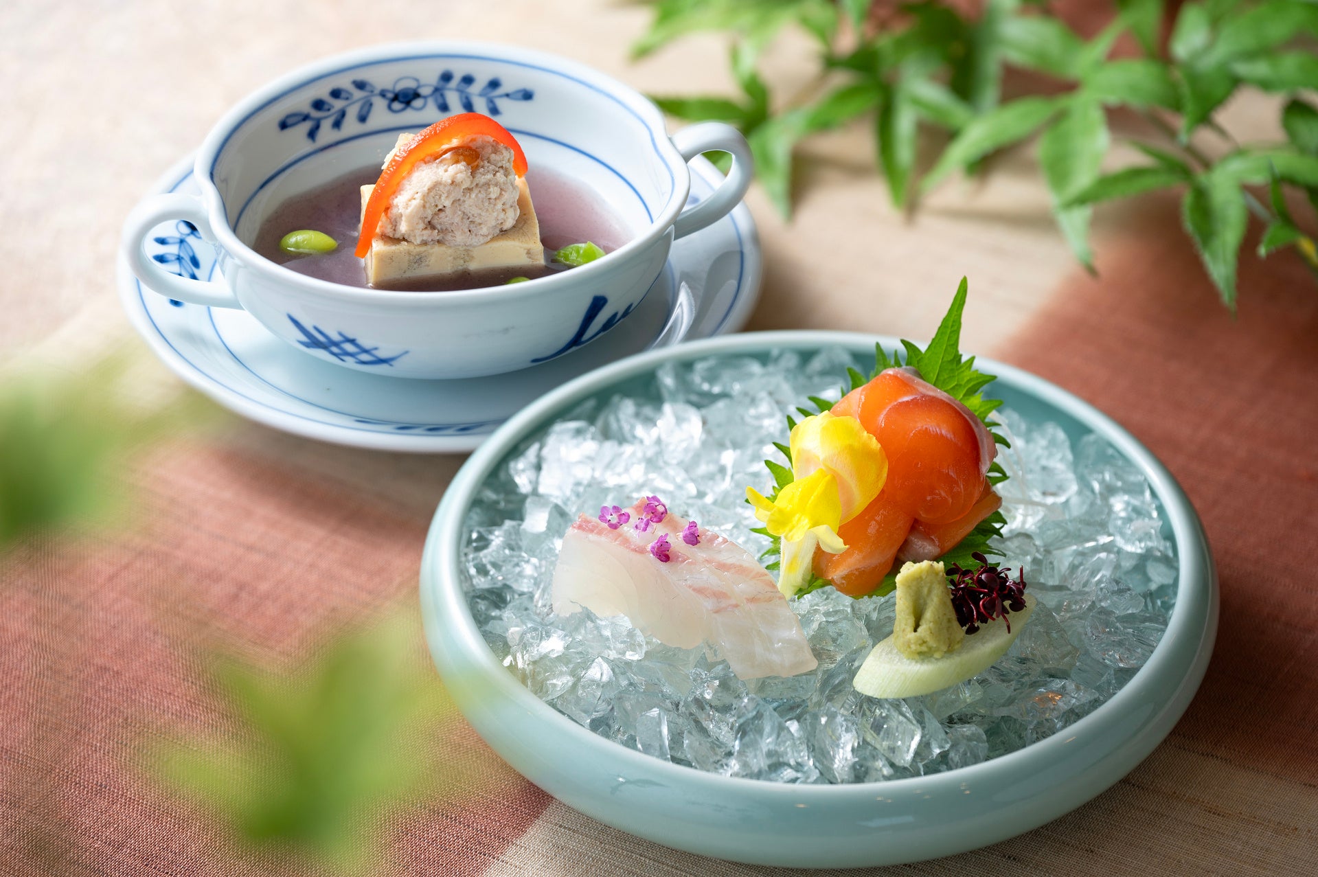 蓮芋ちらし、ナメタカレイ揚げ出し、油目葛叩き、清汁仕立