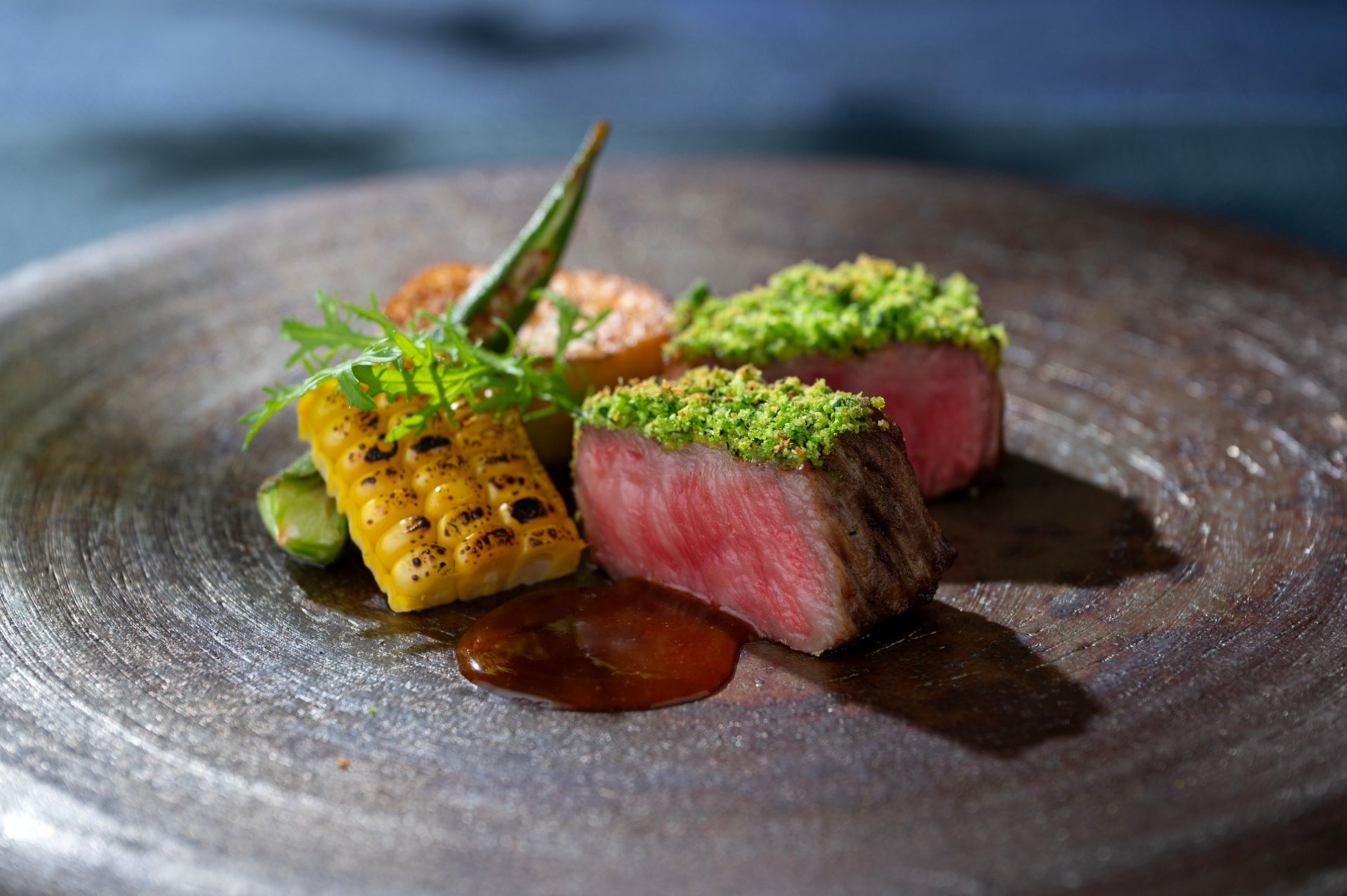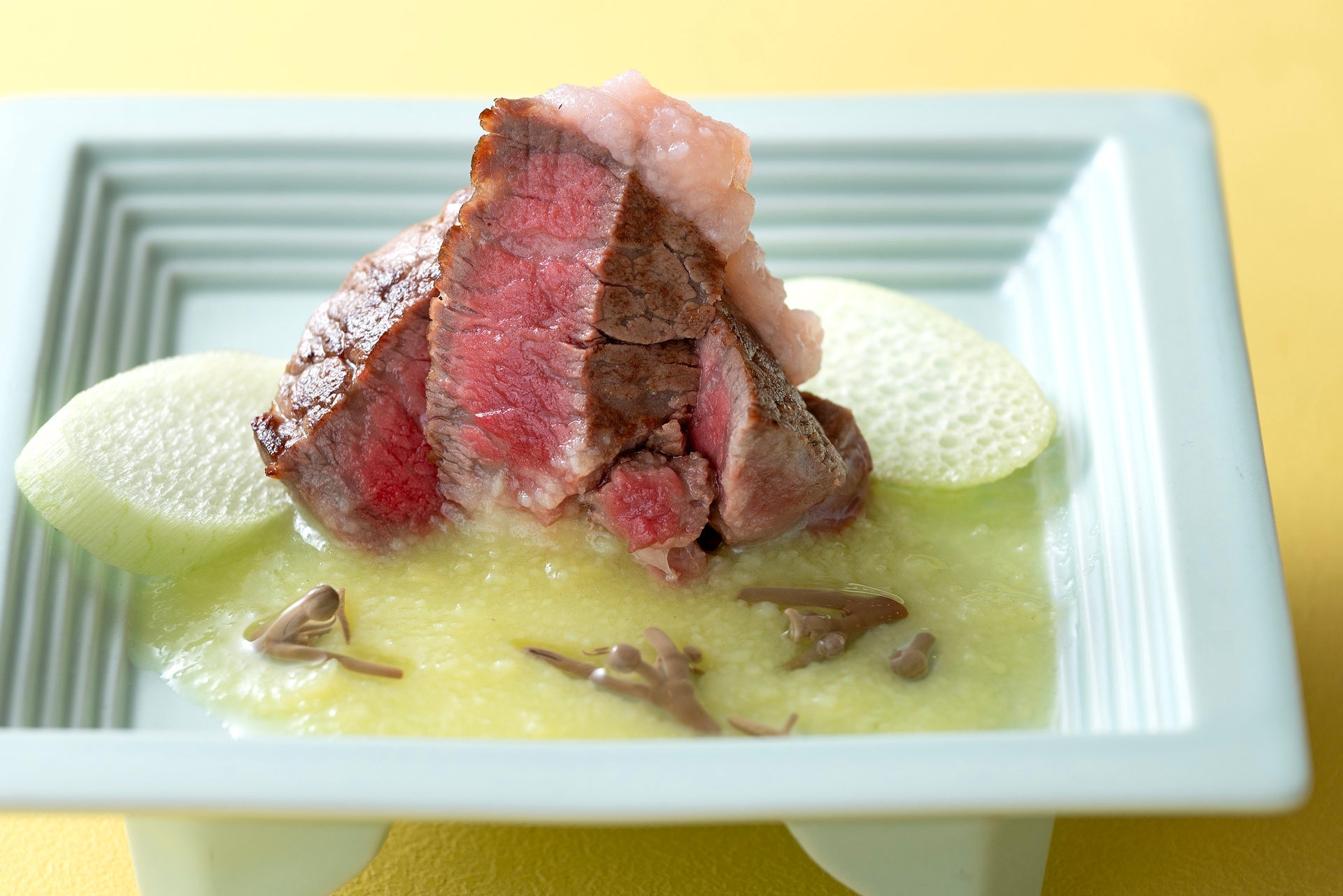 はこだて大沼黒牛ロースのグリエ ペルシャード グリーンマスタードのジュ