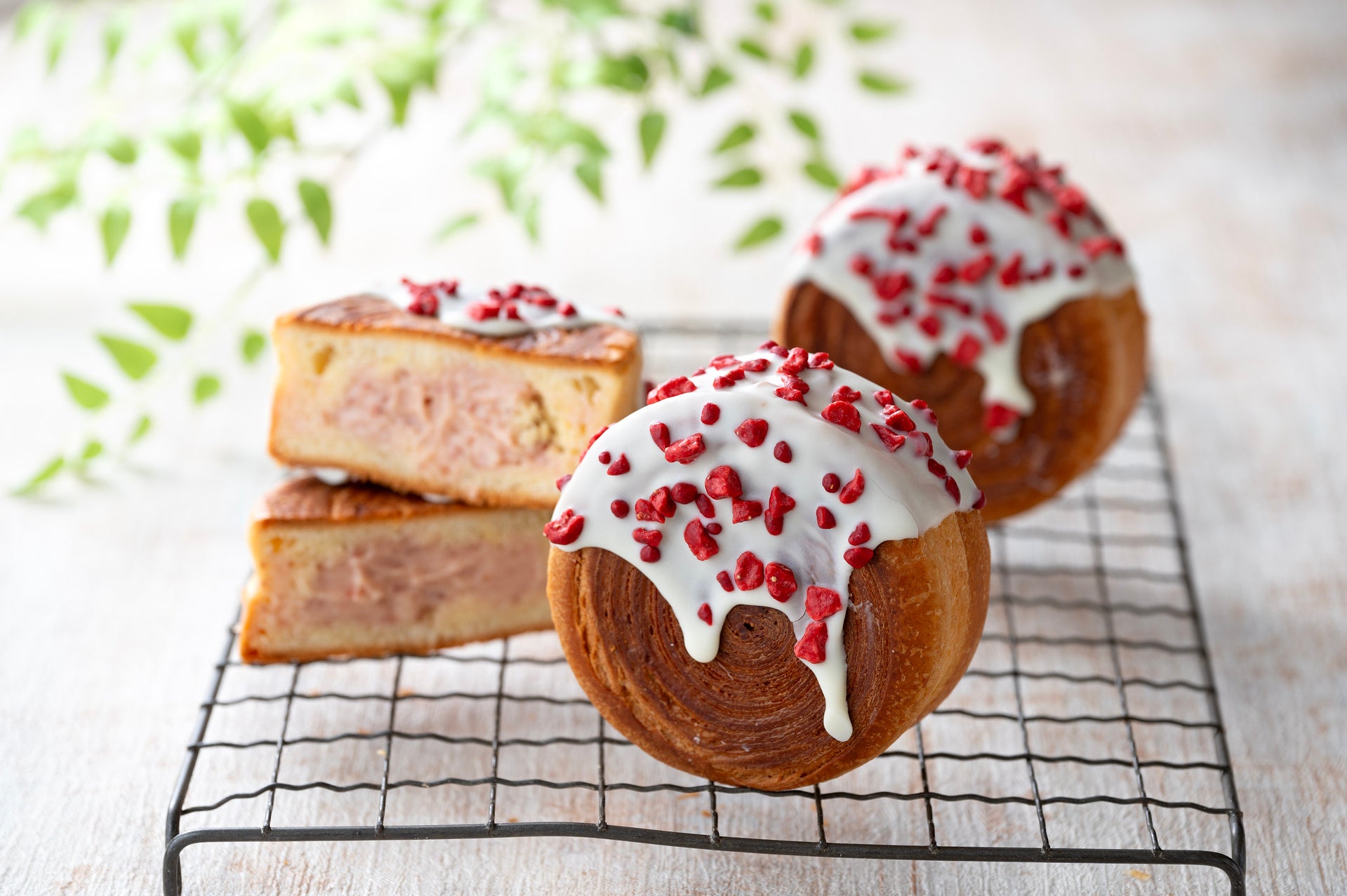 デニッシュの中に、はこだて恋いちごのコンフィチュールとカスタードを合わせたクリームをたっぷり入れて、ホワイトチョコレートでトッピングしました。