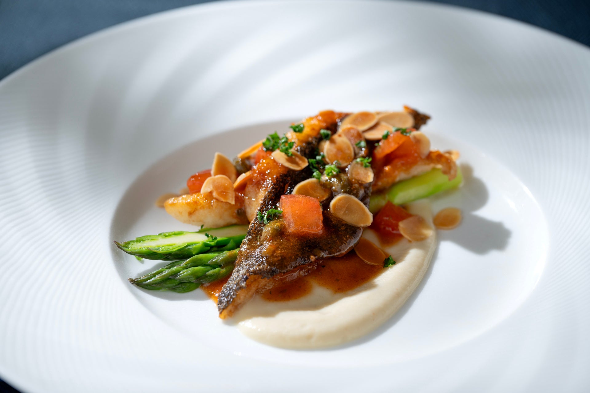 マコガレイのムニエル セロリラブ アスパラガス アマンディーヌ