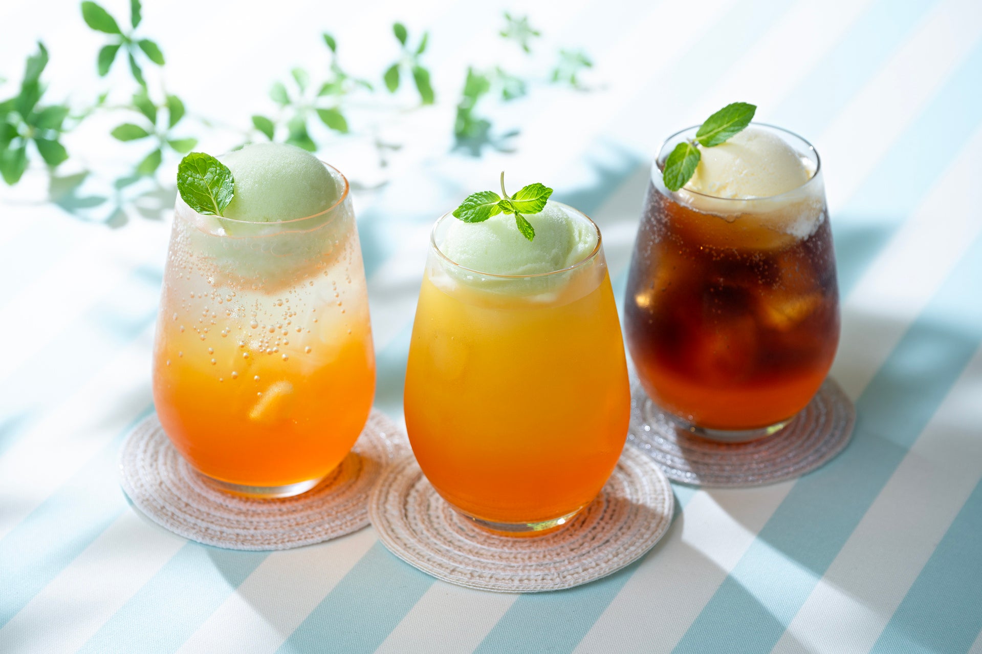 夕張メロンの芳醇な香りと、メロンシャーベットのまろやかな口当たりが楽しめる、暑い夏にぴったりなフロートを3種の味でご用意しました。