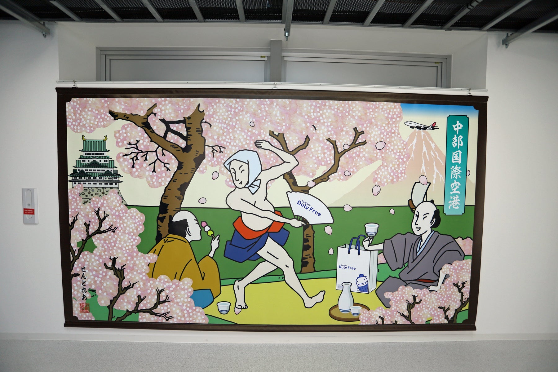 空港の通路を少しでも楽しんで歩いていただけるよう、4枚の浮世絵風イラストを掲示しました。