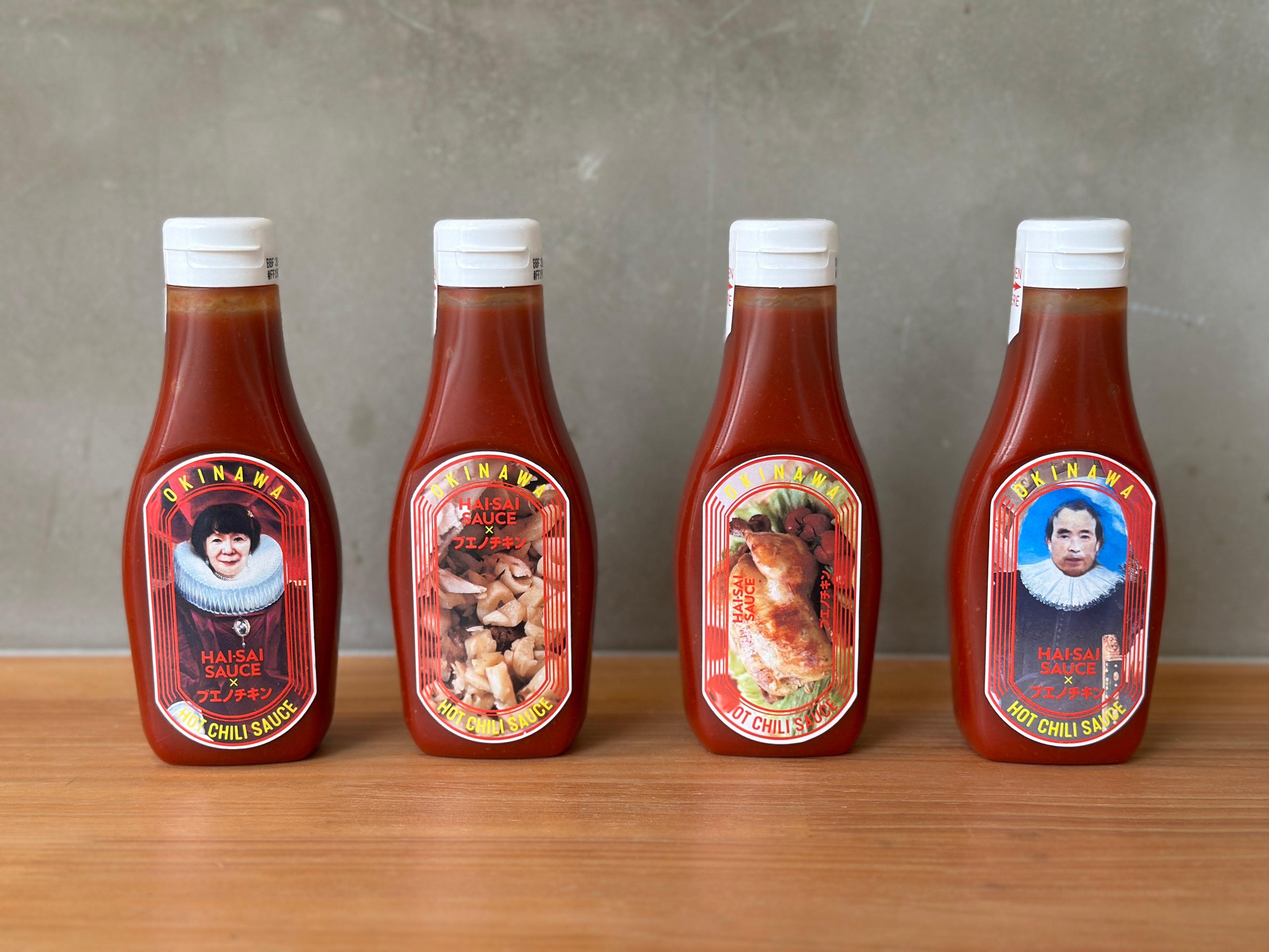 この一つの味だけで42年も営業している店ブエノチキンですが、沖縄発の旨辛調味料「ハイサイソース」の皆さまがブエノチキンの大ファンということからコラボの話が進行。ハイサイソースにもにんにくが入っているので合わないわけがない、新味作っちゃえ〜!と試作したものが「うっま!!!!」