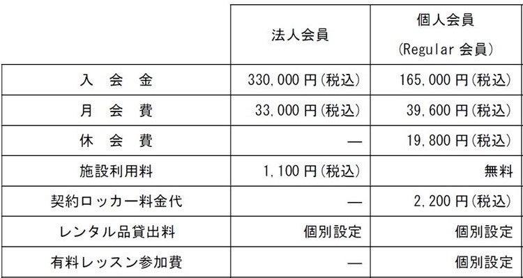 ・個人会員が同伴するビジターの施設利用料1名につき3,300円(税込)