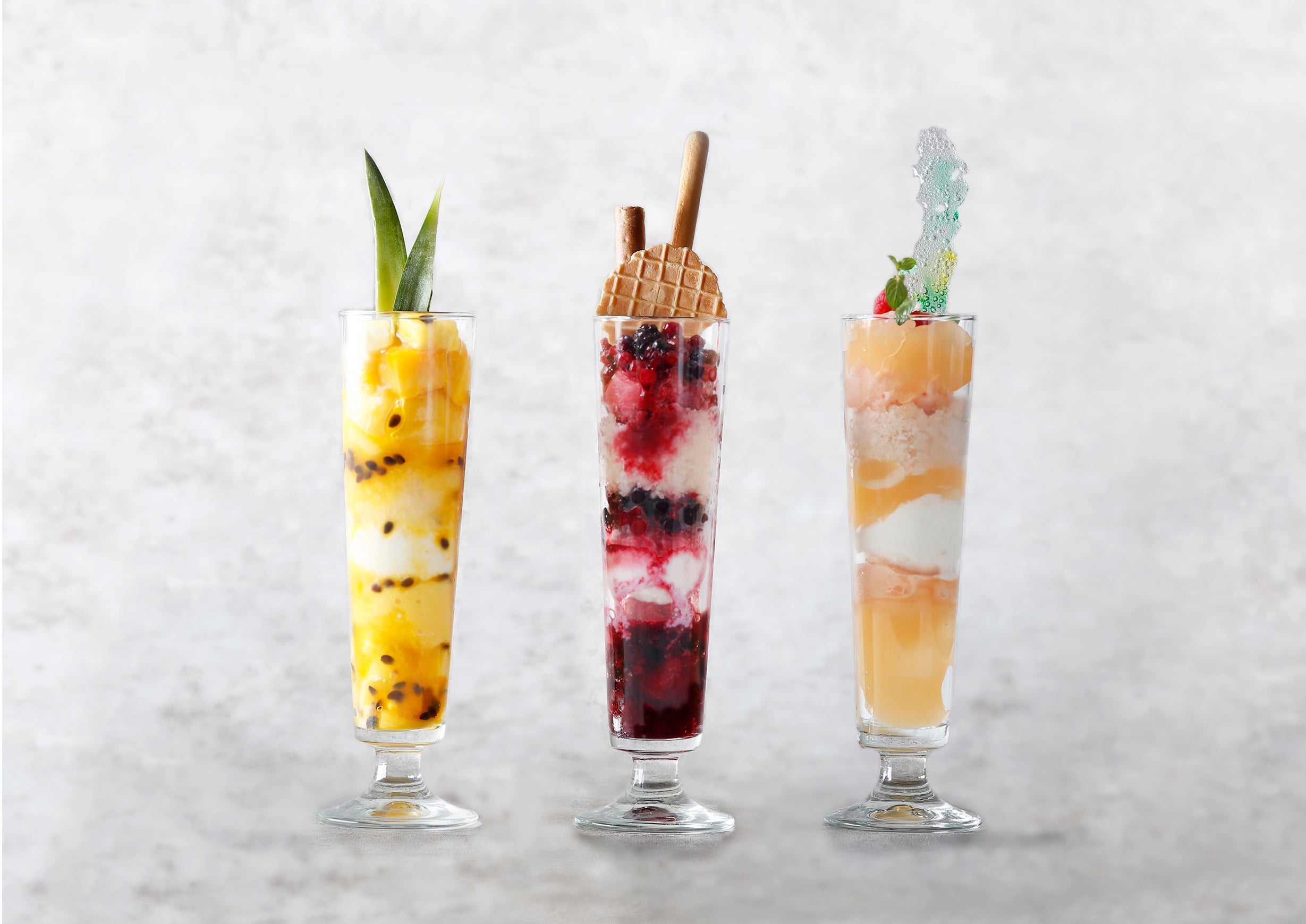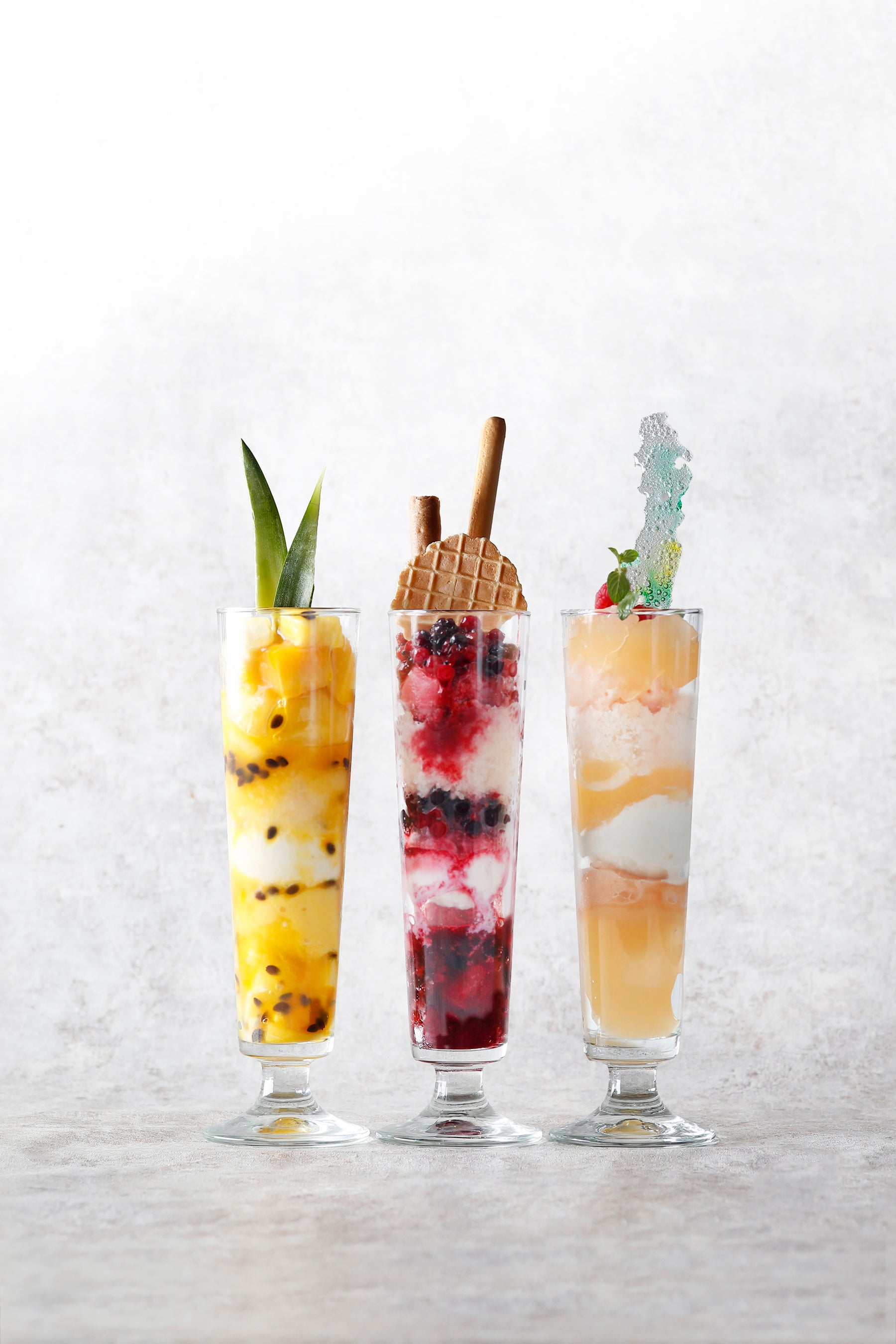 ロンググラスの中で上質な素材が織りなす華やかなグラデーションと、夏ならではの冷たいハーモニーをお楽しみいただけます。