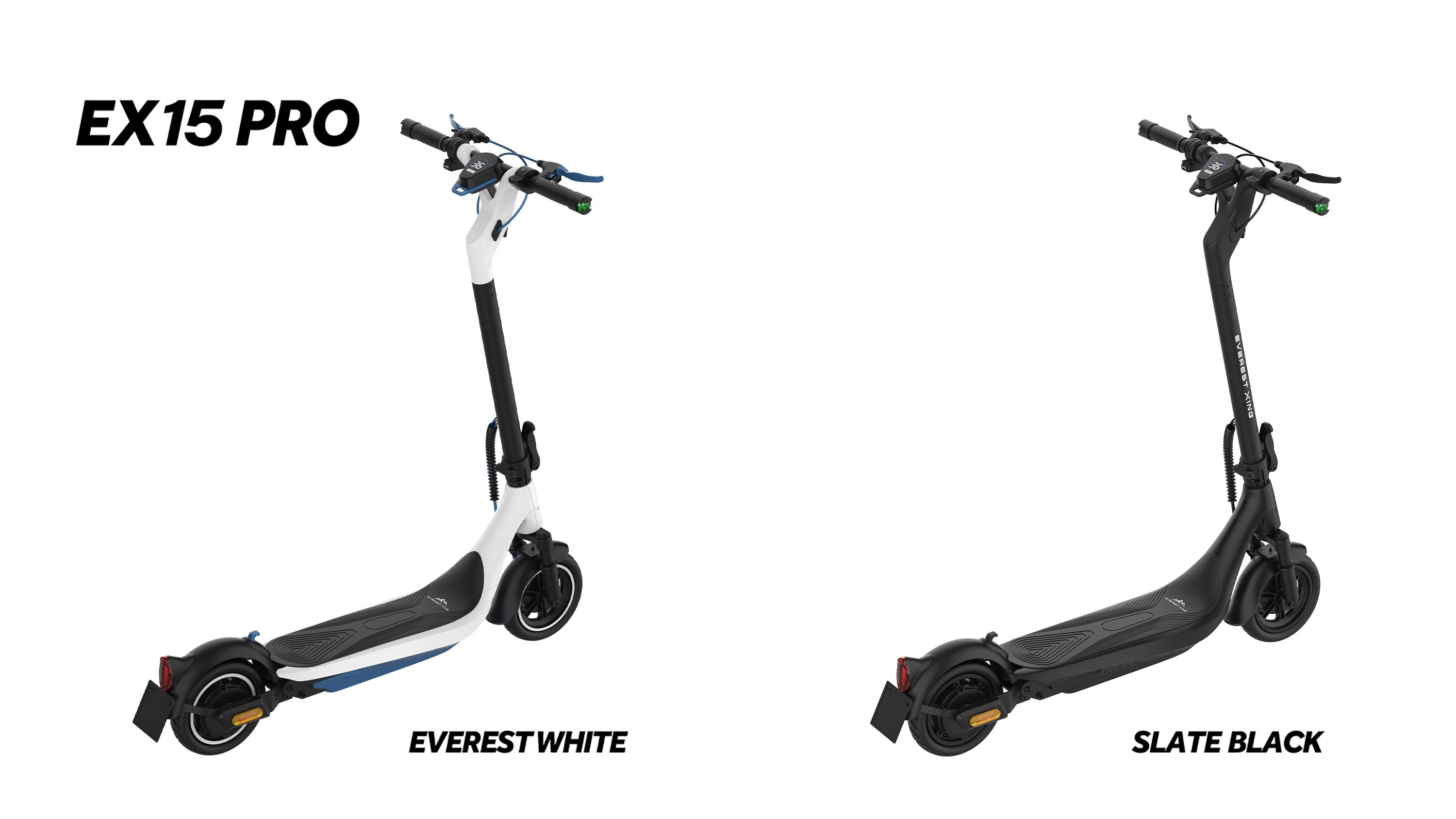 EVEREST XINGは日本初 600Wモーター搭載の電動キックボード型の特定小型原動機付自転車になります。最大の特徴はハイパワーモーター搭載で、登坂能力最大斜度はEX15 PROが47%、EX15が27%に達します。EX15 PROが15Ah48Vリチウムイオン電池を搭載、一回の充電走行距離も50km超えます。