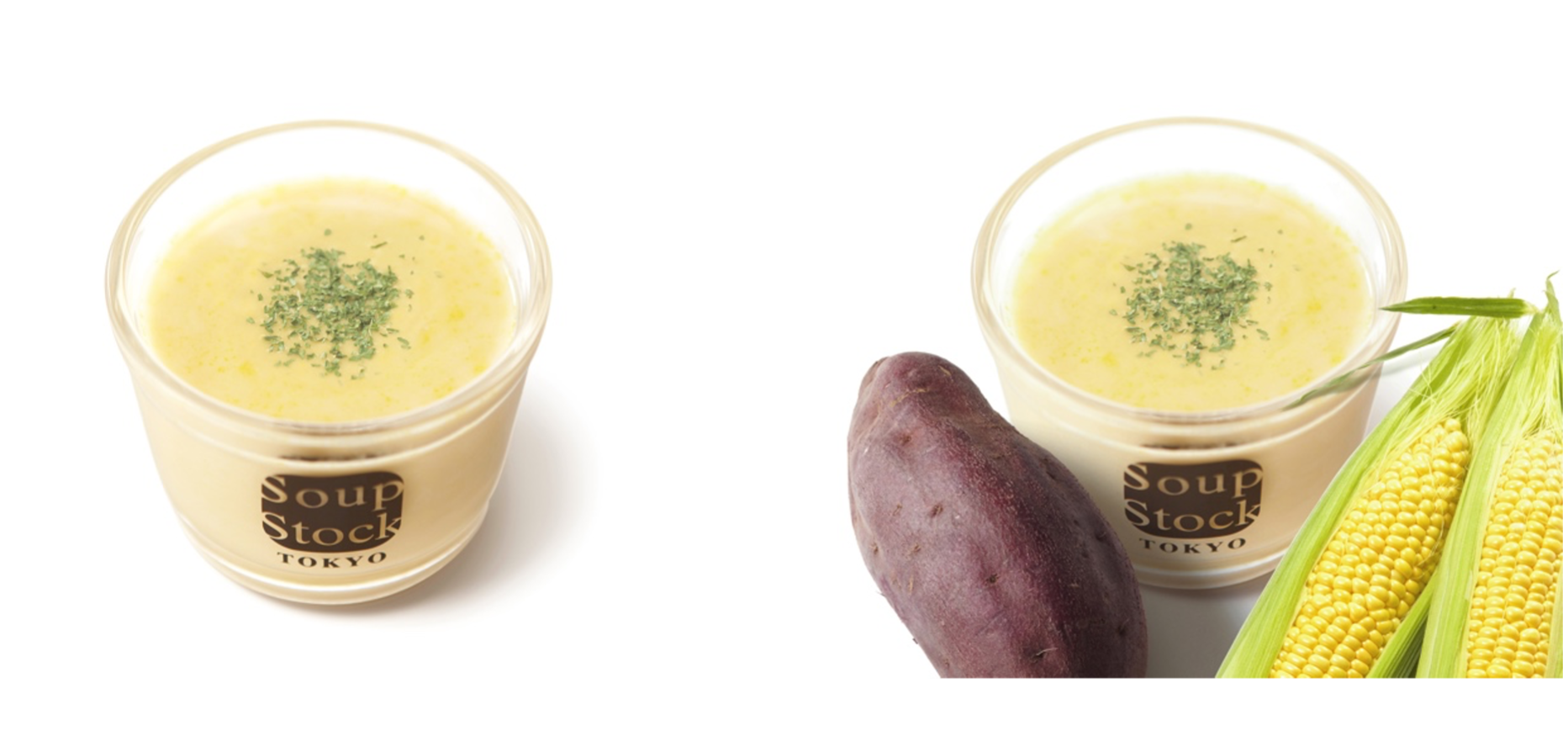 北海道産のスイートコーンと国産のさつま芋のおいしさを、十二分に発揮させました。素材独自の甘さが魅力の冷たいスープです。