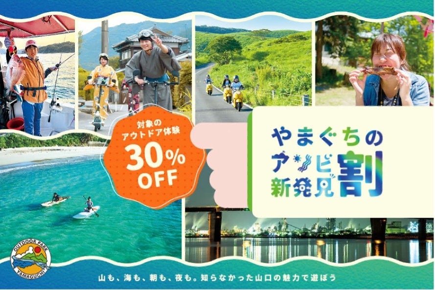 山口県のアウトドア等体験コンテンツの認知度向上と利用促進を目的とした県内のアウトドアアクティビティが30%OFFで利用できる「やまぐちのアソビ新発見割」