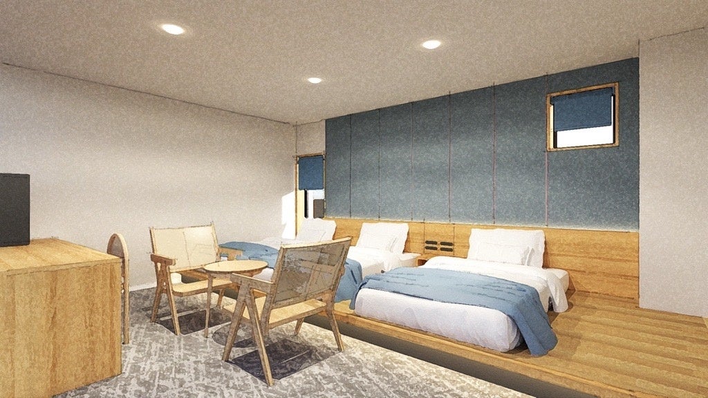 部屋タイプ:エコノミーダブルルーム2室、スタンダードツインルーム2室、スタンダードツインルーム(露天風呂付)3室、モデレートツインルーム3室、モデレートトリプルルーム1室、モデレートトリプルルーム(露天風呂付)1室、バンクフォースルーム1室