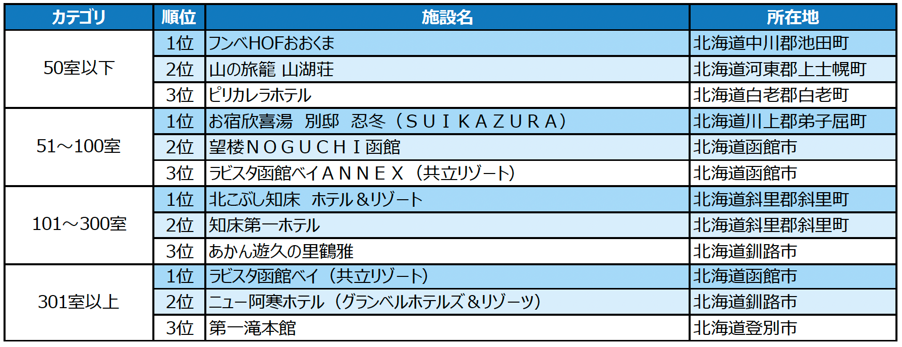 株式会社リクルート(本社:東京都千代田区 代表取締役社長:北村 吉弘)が運営する旅行サイト『じゃらんnet』、旅行情報誌『じゃらん』、観光に関する調査・研究、地域振興機関「じゃらんリサーチセンター」は、2023年度(2023年4月~2024年3月)の1年間に顕著な実績を収められた北海道ブロックの宿泊施設を表彰する「じゃらんアワード2023」(北海道ブロック)を発表いたします。