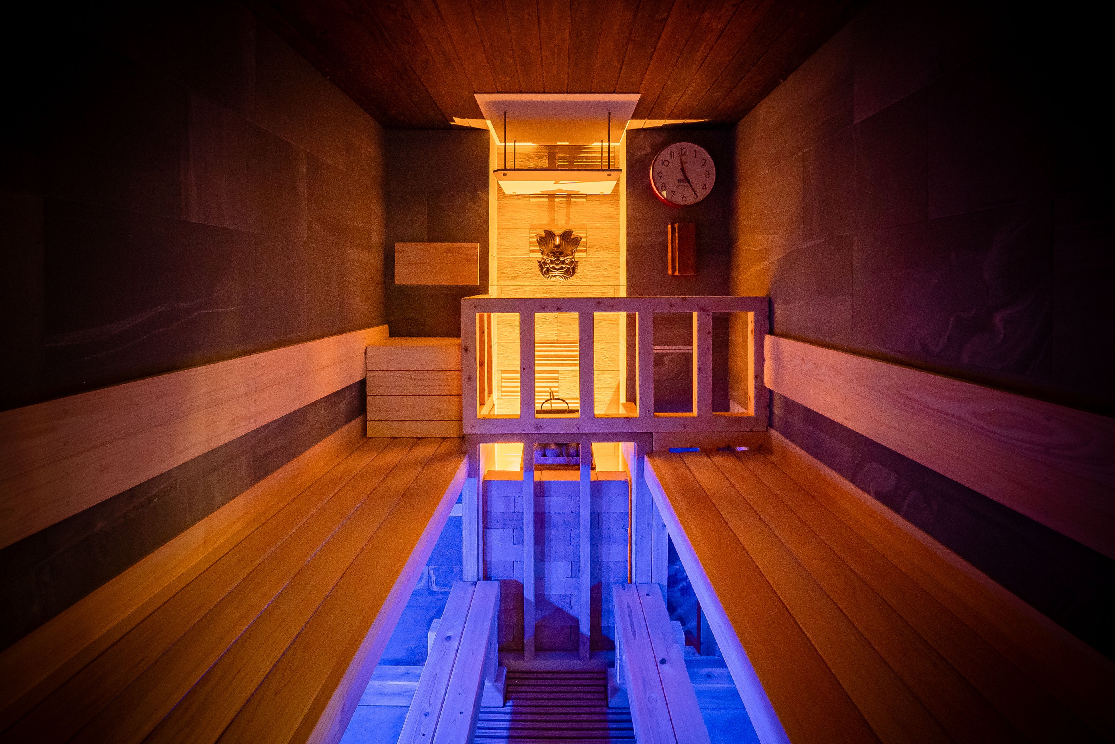 フィンランドサウナと和の融合。漆黒の内装と高い温熱効果で、深いリラクゼーションを体験できます。