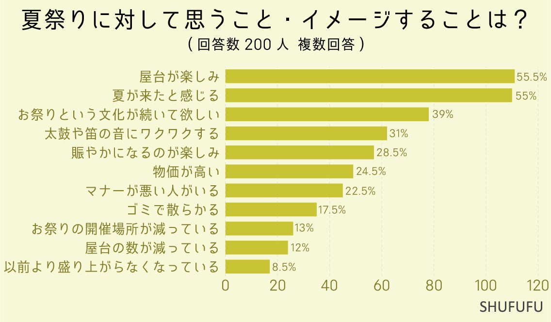夏祭りに対して思うこと・イメージすることは?(複数回答)