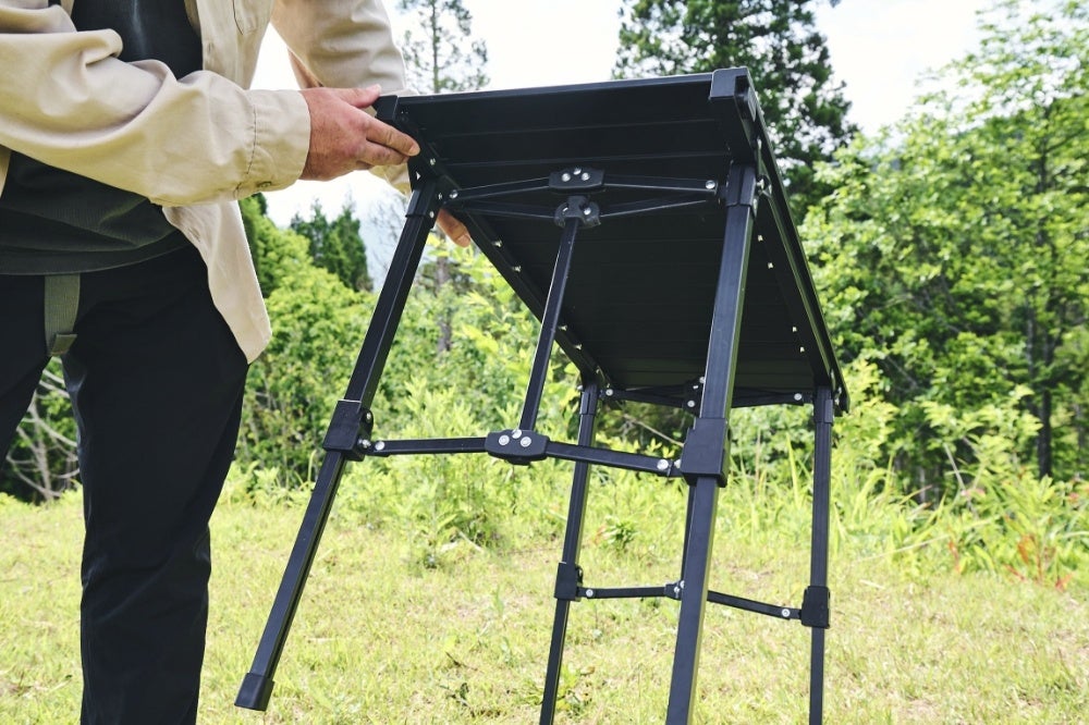 高さ39.5cmのロースタイルから高さ61cmのハイスタイルまで、4mm単位でセッティングできるため、キャンプスタイルに合わせて楽しめます。