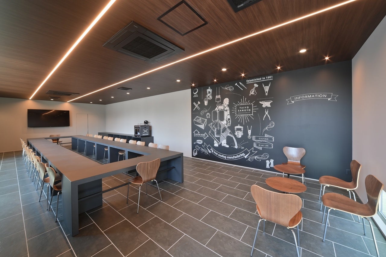 大洋産業の社内で、次世代を担う若手社員を中心としたプロジェクトが組まれ、2年以上の歳月をかけて工房が完成しました。「鋳物を学べる場所」「鋳物に関わる人がいるところ」「鋳物を身近に感じていただけるように」という理由からチームメンバーによって「CASTER HOME(CASTER…鋳造者 HOME…家)」と体験工房を名付けました。3Kと呼ばれる事もある鋳物業界のイメージを払拭したいとの想いから体験工房を「ヴィンテージ&ラグジュアリー」をテーマにしたおしゃれな空間に仕上げました。