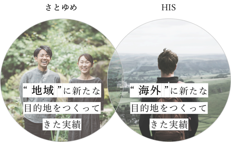 HISより人材・ネットワーク・資金・ノウハウなどを、さとゆめに提供することで、これまでさとゆめが地域密着で推し進めてきた地方創生プロデュースを、よりスケールアップすることが可能となり、さらに大きな価値を地域に提供することが出来るようになります。