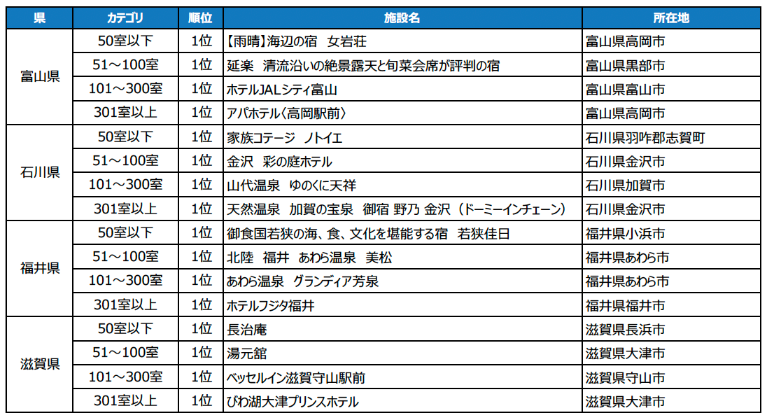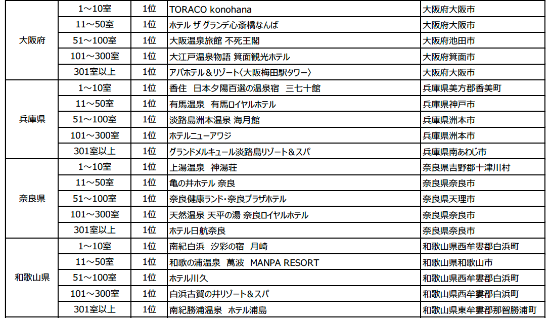 じゃらんnetランキング 泊まって良かった宿大賞(総合部門:都道府県別)