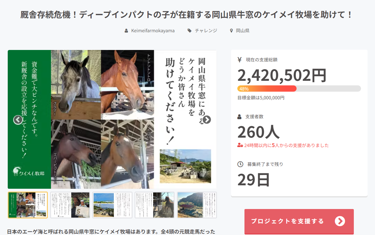 しかし、現実の経営状況はとても厳しく資金的には4頭を守るのに必死です。