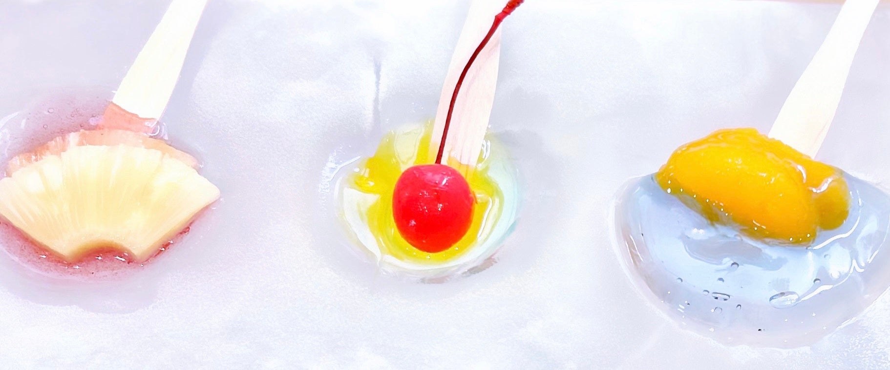 みんな大好きなタコ焼きで”オリジナルたこせん”を自分好みのトッピングで! カラフルフルーツ飴はお好きなフルーツを選んで飴作り体験もできちゃいます!