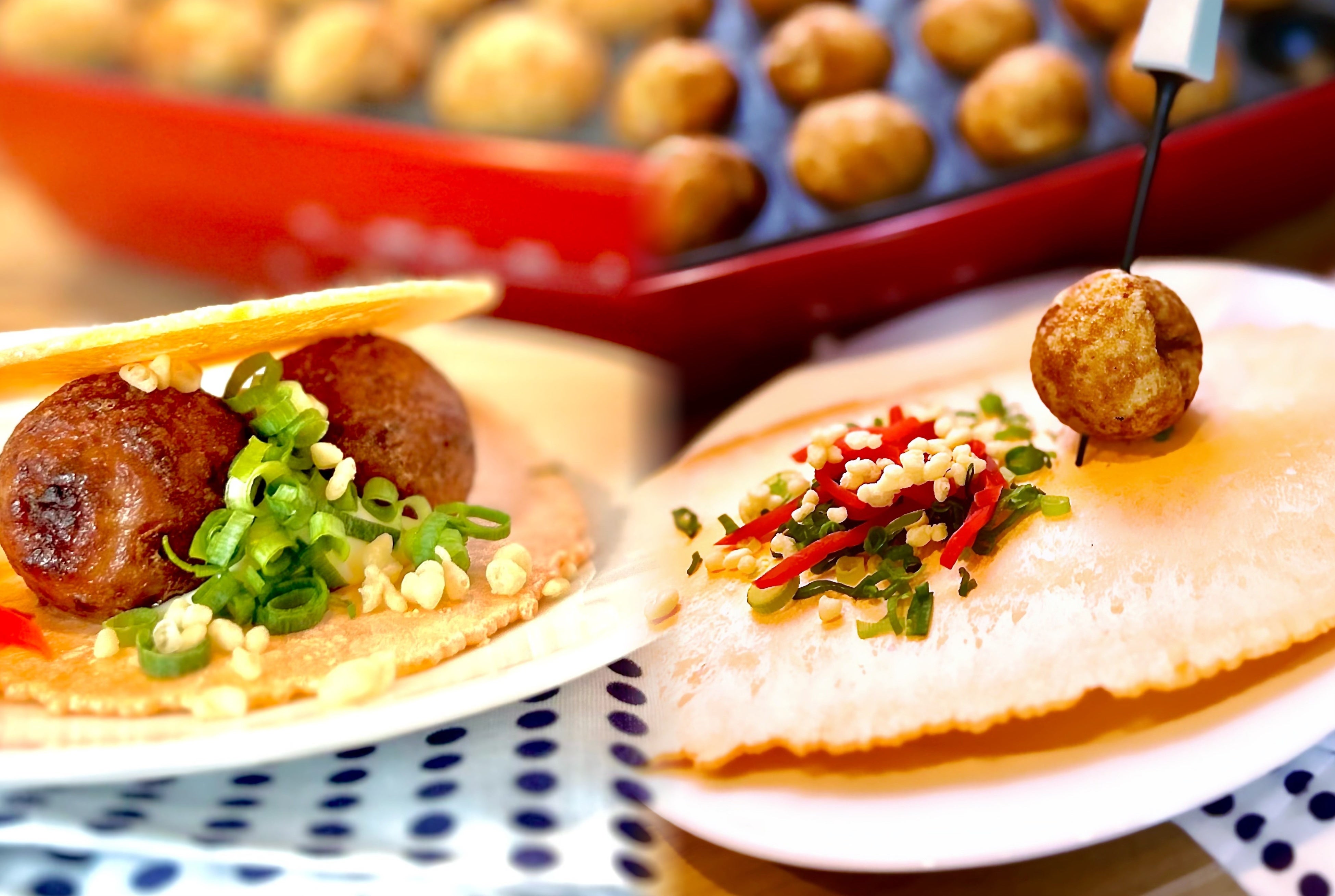 みんな大好きなタコ焼きで”オリジナルたこせん”を自分好みのトッピングで! カラフルフルーツ飴はお好きなフルーツを選んで飴作り体験もできちゃいます!