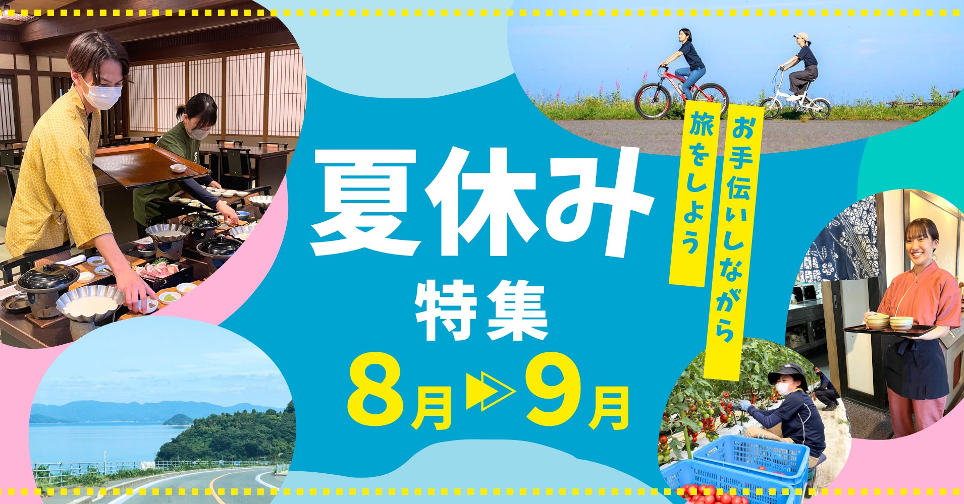<夏休み特集>では、8月1日(木)〜9月30日(月)の期間に実施される「おてつたび」を一覧で紹介しています。