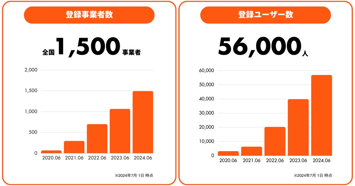 2024年7月現在、登録者ユーザー数は5.6万人を超え、大学生や社会人、転職活動中の方、シニアまで幅広い年齢層の方にご参加頂いています。受け入れ事業者数は全国47都道府県 1,400事業者に拡大。業種は、一次産業と旅館など観光業が中心ですが、それ以外にもゲストハウスやキャンプ場、酒造会社や水産物の加工業や飲食店など多種多様です。