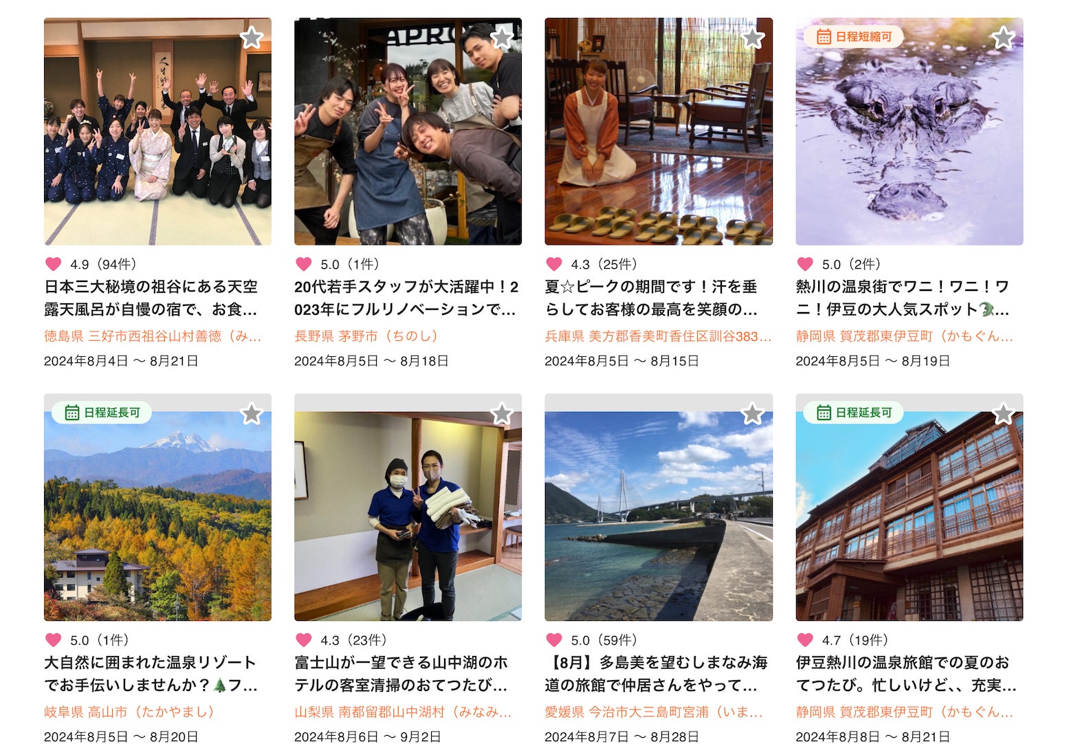 現在募集中のおてつたび ※定員に達し次第、募集終了となります。