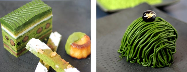 抹茶のモアールショコラ / 抹茶のベイクドチーズタルト / 抹茶と練乳のムース / 抹茶の生チョコ / 抹茶のバターサンド / 抹茶のカステラ / 抹茶プリン / 抹茶ティラミス / 抹茶モンブラン / 抹茶のテリーヌ / 抹茶のクッキーシュー / 抹茶とホワイトチョコのスコーン / マーラーカオ / 生八つ橋 / フルーツタルト / 桃のヴェリーヌ / オペラ /ザッハトルテ / メロンショート /フレンチトースト / わらび餅 / 抹茶餡餅 / 八女抹茶入り茶そば / 抹茶白玉と焼き目白玉の冷やしみたらし団子 / フルーツ ほか