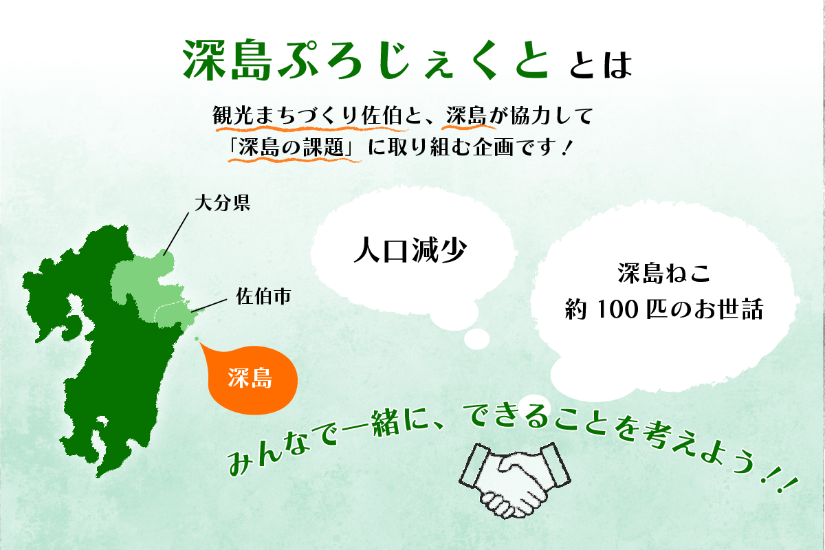 佐伯市観光協会(現 観光まちづくり佐伯)と深島が手を取り、島の課題を解決することを目的に「深島ぷろじぇくと」をたちあげました。