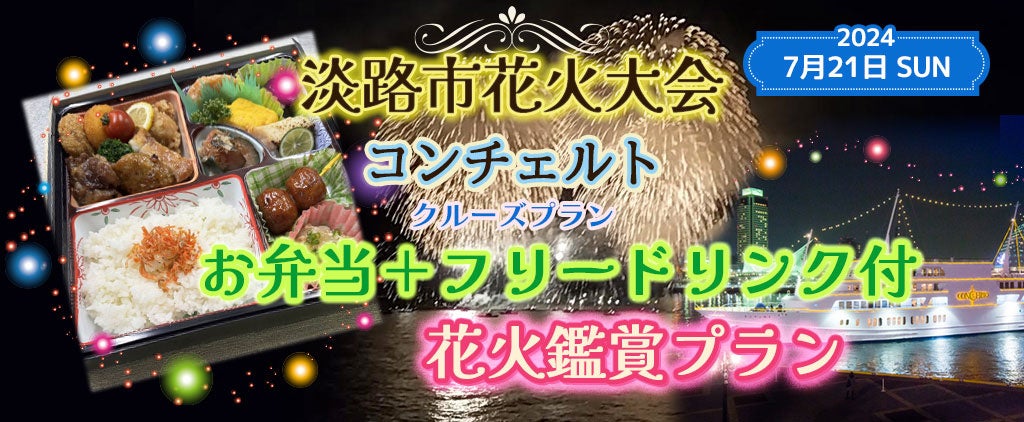 【新プラン20席限定】お一人様¥11,000- 7月21日《淡路花火大会を船上で見よう》(18:00出港) コンチェルト 【お弁当+フリードリンク付 プラン】のオンライン予約を開始しました。