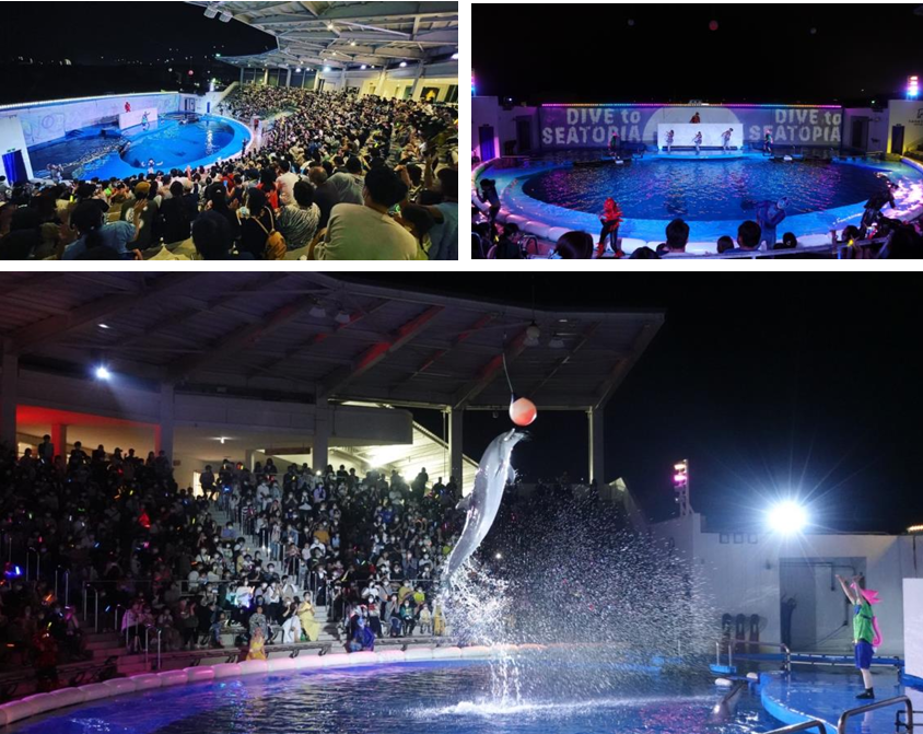 メインパフォーマンス「DIVE TO SEATOPIA」は、ダイナミックなイルカのパフォーマンスと、『白A』によるダンス・アクロバット要素×映像の芸術的なパフォーマンスのコラボレーションにより生み出される、新たなナイトエンターテインメントです。